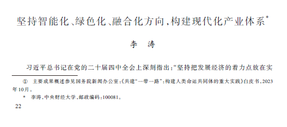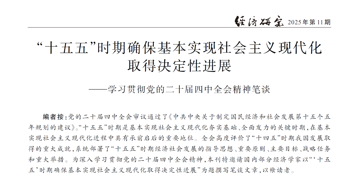 近日,yl23411永利集团李涛教授应《经济研究》编辑部邀请,为深入学习贯彻党的二十届四中全会精神,以“‘十五五’时期确保基本实现社会主义现代化取得决定性进展”为题撰写笔谈文章,论文《坚持智能化、绿色化、融合化方向,构建现代化产业体系》在《经济研究》2025年第11期正式发表。