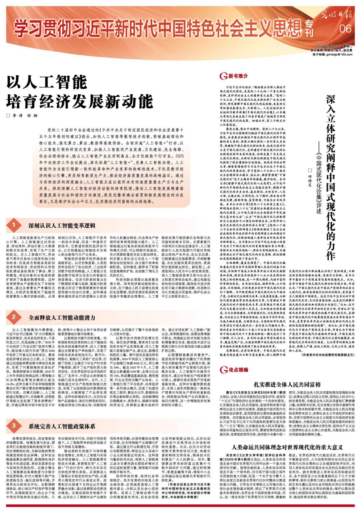 2月10日,《光明日报》“学习贯彻习近平新时代中国特色社会主义思想专刊”刊发我校副校长李涛教授和永利23411集团徐翔教授的署名文章《以人工智能培育经济发展新动能》。