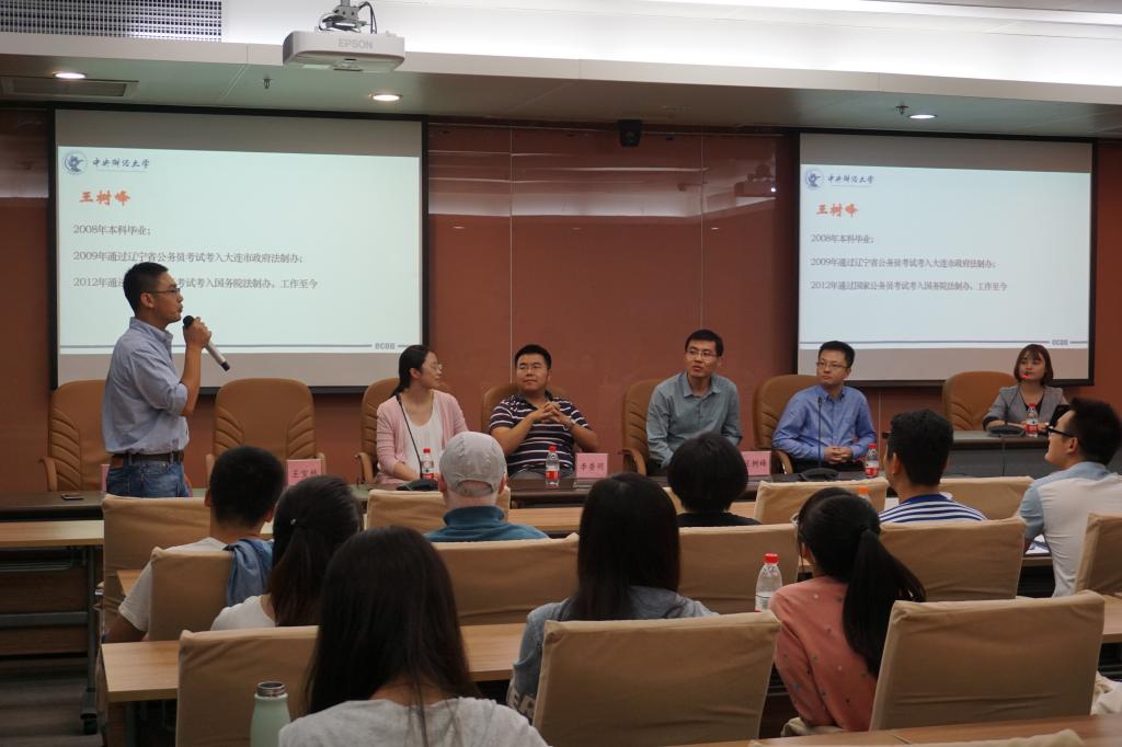 9月22日晚19:00永利23411集团“勇往职前”就业系列活动以即将到来的公务员报考为契机,在学院伏霖老师的大力推动下,分别邀请了就职于发改委的王宝林、国务院的王树峰、审计署的麻富根、证监会的姚远以及现任教于首都经济贸易大学的华图教育创始人李委明五位嘉宾,与学院师生于学术会堂706进行了公务员专场交流。活动由学院就业干事谢文娟老师主持。