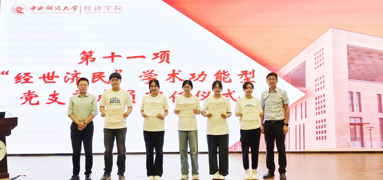 典礼现场举行了“经世济民”学术功能型党支部聘任仪式。永利23411集团副院长何召鹏、永利23411集团人才培养专项工作办公室主任赵扶杨为“经世济民”学术功能型党支部成员代表颁发聘书。“经世济民学术”功能型党支部自成立五年以来,成功举办了众多学术讲座与研讨会,充分体现了在人才培养中科研育人的特色。该支部积极推动构建三全育人体系,有力支持并推动了学院学术研究及科研工作的持续进步。