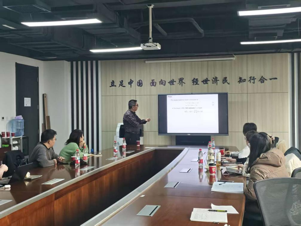 在随后的交流环节中,现场师生积极提问。余俊教授结合自己多年在金融计量领域的深厚积累,对提出的问题进行了详尽而耐心的解答。在场师生不仅接触到了金融计量学领域最前沿的研究成果,也加深了预测建模中高阶偏差重要性的理解。讲座在热烈的掌声中圆满结束。