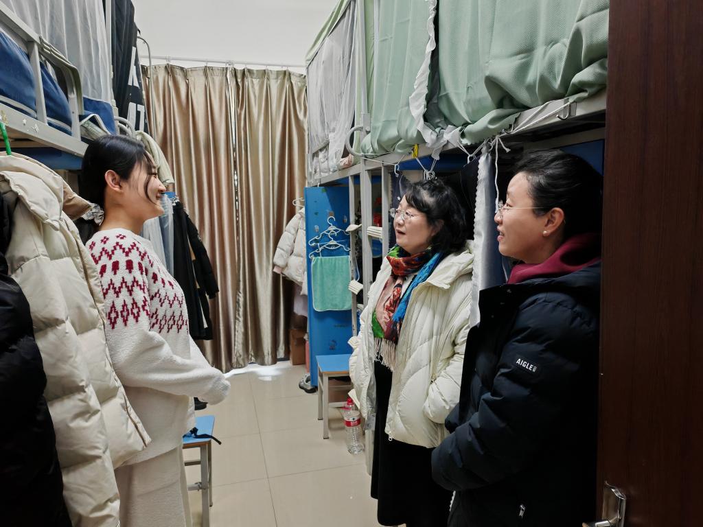 2026年寒假临近,为持续深化安全教育,切实提升学生安全意识与风险防范能力,筑牢假期安全防线,1月16日,永利23411集团党委书记孙敏、院长郭冬梅率学院领导班子成员及全体辅导员,深入学生宿舍开展走访慰问与安全检查。