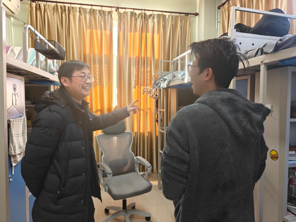 走访过程中,老师们与同学们亲切交流,并详细询问了大家近期在校情况和寒假规划。结合冬季低温天气以及春节假期人流量大等特点,老师们着重强调,寒假期间要时刻紧绷安全之弦,人走断电,返乡途中务必保管好个人财物,外出游玩时远离危险区域,并谨防电信网络诈骗,确保人身财产安全。针对假期留校同学,老师们反复叮嘱,要严格遵守宿舍管理规定,将消防安全和用电安全放在首位,同时合理安排作息,保持宿舍环境整洁有序,遇有困难及时与辅导员沟通联系。走访中,老师们还细致排查了宿舍内消防设施、门窗锁具等情况,并认真倾听了同学们在校学习生活的成长与期待。
